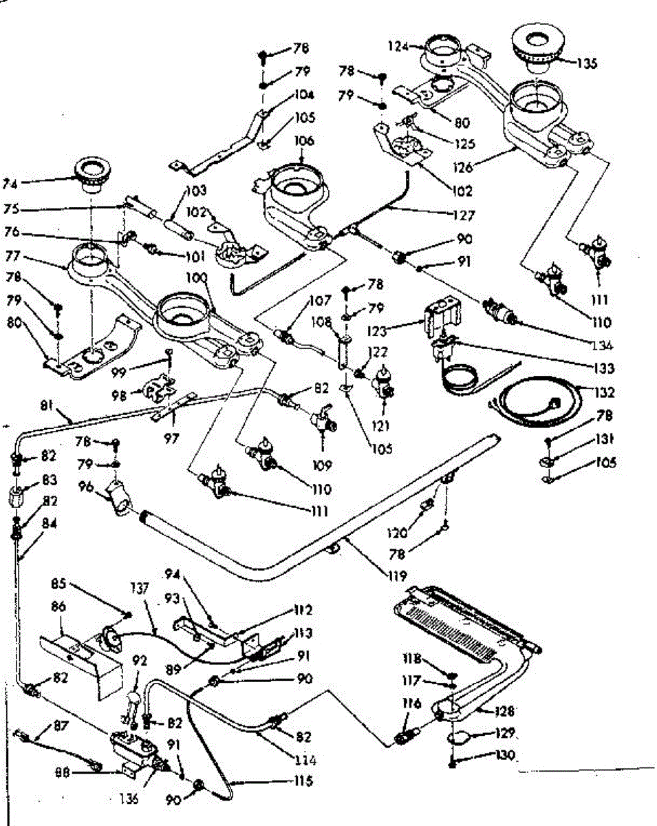Parts for Kenmore 103.7426643 (1037426643, 103 7426643): Burner Section Parts