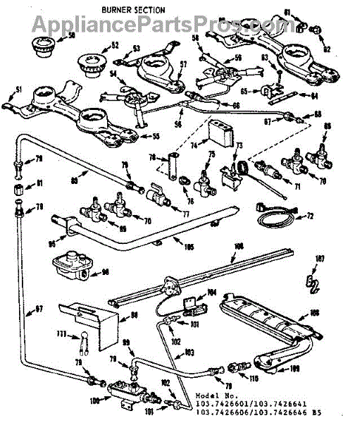 Parts for Kenmore 103.7426646 (1037426646, 103 7426646): Burner Section Parts
