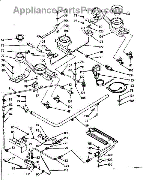 Parts for Kenmore 103.7426663 (1037426663, 103 7426663): Burner Section Parts