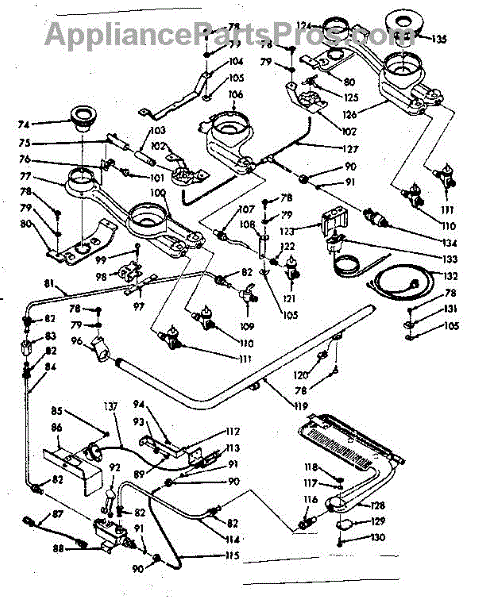 Parts for Kenmore 103.7426701 (1037426701, 103 7426701): Burner Section Parts
