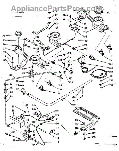 Parts for Kenmore 103.7426740 (1037426740, 103 7426740): Burner Section Parts