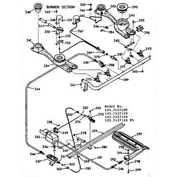 Parts for Kenmore 103.7427160 (1037427160, 103 7427160): Burner Section Parts