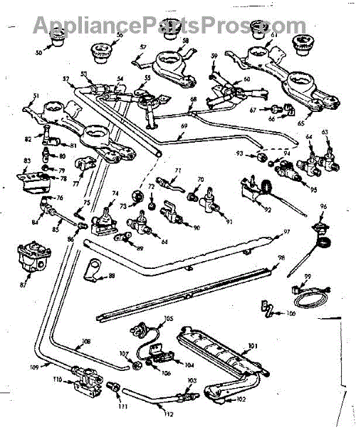 Parts for Kenmore 103.7445810 (1037445810, 103 7445810): Burner Section Parts