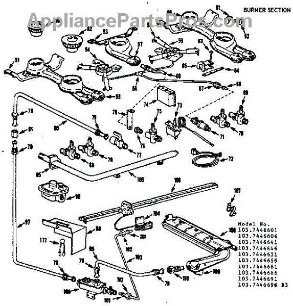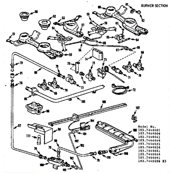 Parts for Kenmore 103.7446601 (1037446601, 103 7446601): Burner Section Parts