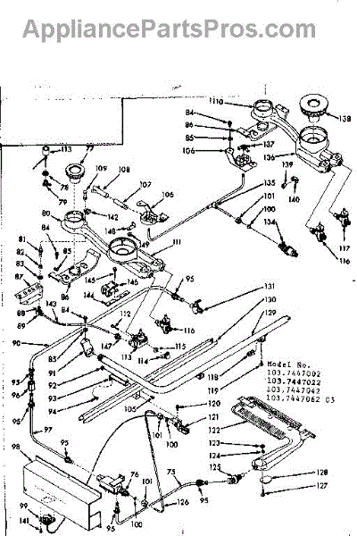 Parts for Kenmore 103.7447002 (1037447002, 103 7447002): Burner Section Parts
