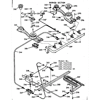 Parts for Kenmore 103.7447240 (1037447240, 103 7447240): Burner Section Parts