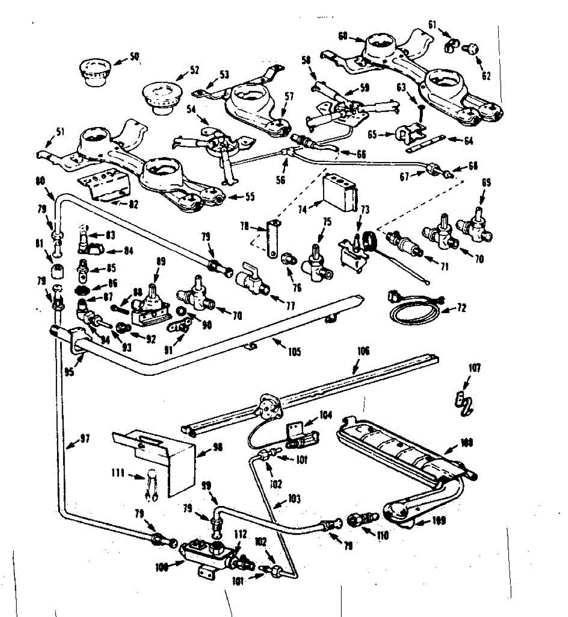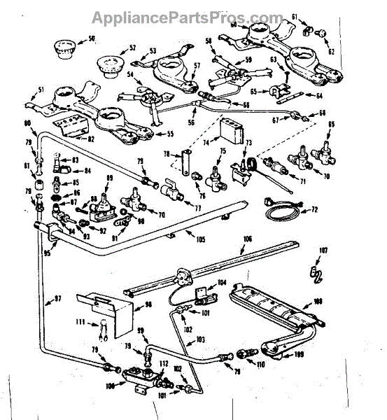 Inverted tubing nut secures gas line connections on ranges and ovens. Replace if stripped, corroded, or missing to ensure proper tubing fitment.