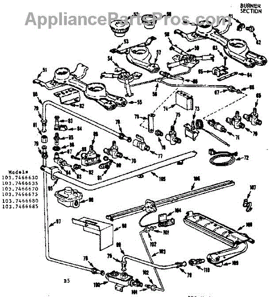 Parts for Kenmore 103.7466675 (1037466675, 103 7466675): Burner Section Parts