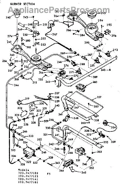 Parts for Kenmore 103.7477141 (1037477141, 103 7477141): Burner Section Parts