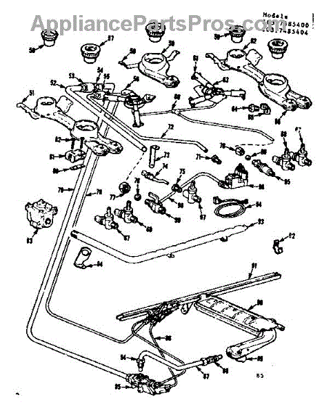 Parts for Kenmore 103.7485400 (1037485400, 103 7485400): Burner Section Parts