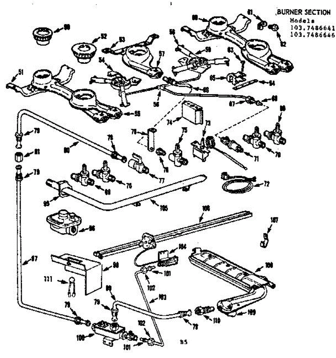 Parts for Kenmore 103.7486641 (1037486641, 103 7486641): Burner Section Parts