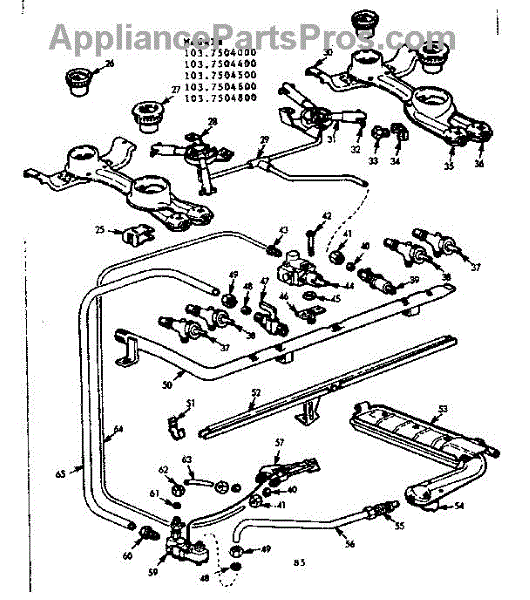Parts for Kenmore 103.7504500 (1037504500, 103 7504500): Burner Section Parts