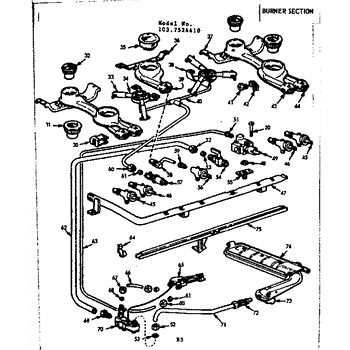 Parts for Kenmore 103.7524410 (1037524410, 103 7524410): Burner Section Parts