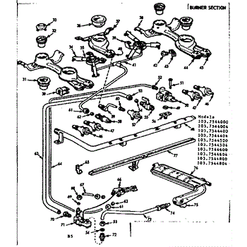 Parts for Kenmore 103.7544604 (1037544604, 103 7544604): Burner Section Parts