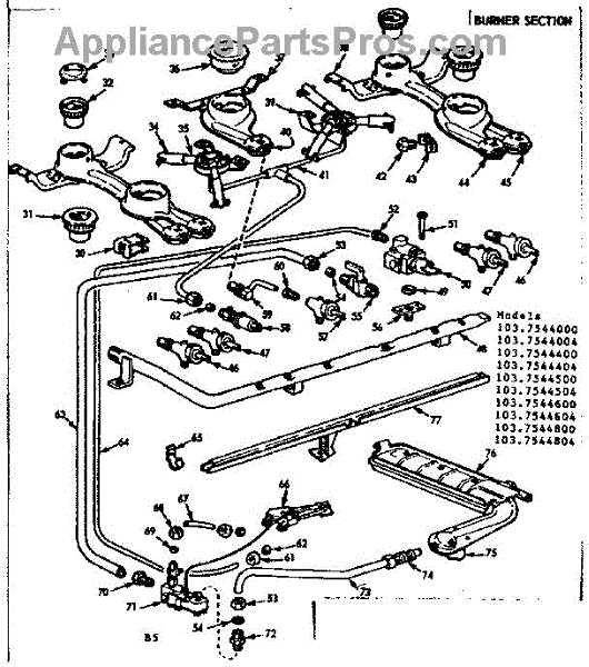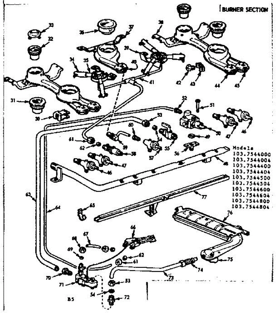 Parts for Kenmore 103.7544804 (1037544804, 103 7544804): Burner Section Parts