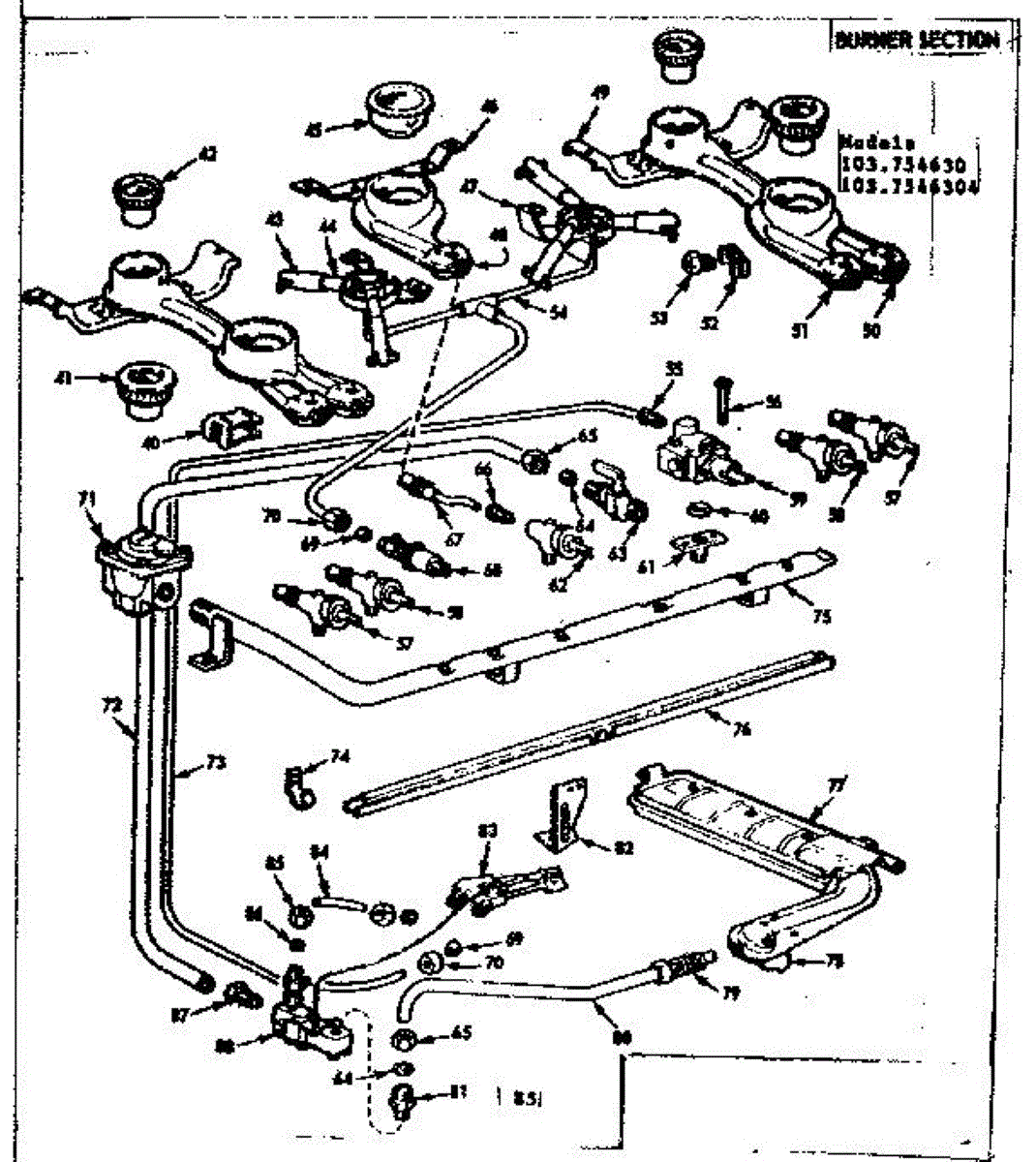Parts for Kenmore 103.754630 (103754630, 103 754630): Burner Section Parts
