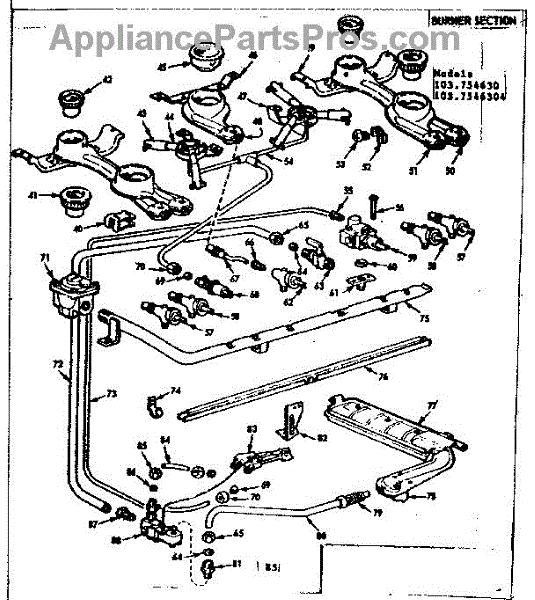 Parts for Kenmore 103.7546304 (1037546304, 103 7546304): Burner Section Parts