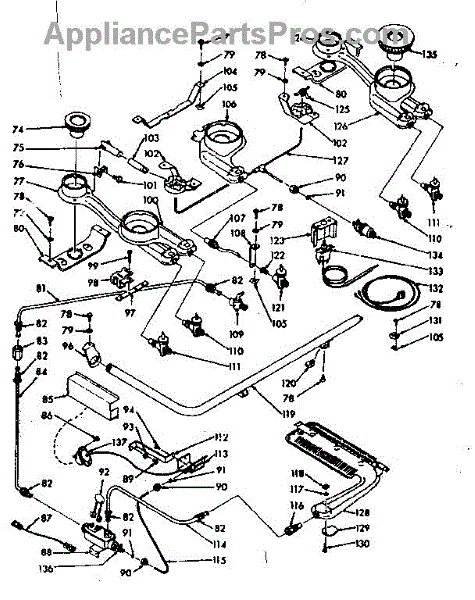 Parts for Kenmore 103.7666701 (1037666701, 103 7666701): Burner Section Parts