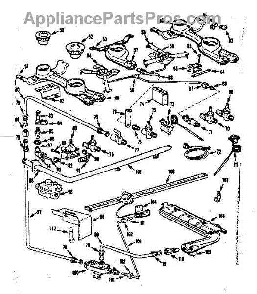 Parts for Kenmore 103.7686661 (1037686661, 103 7686661): Burner Section Parts