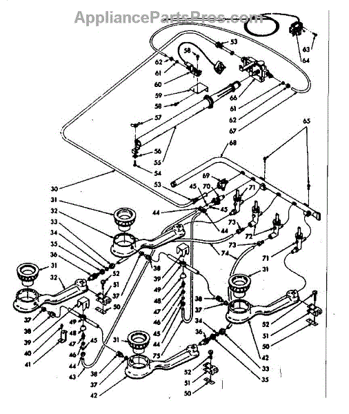 Parts for Kenmore 103.7706740 (1037706740, 103 7706740): Burner Section Parts