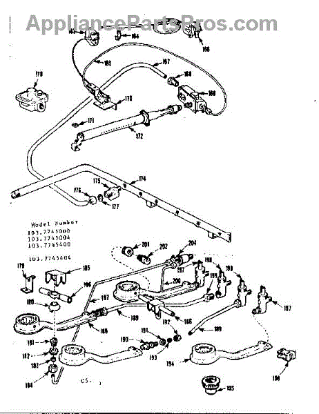 Parts for Kenmore 103.7745004 (1037745004, 103 7745004): Burner Section Parts