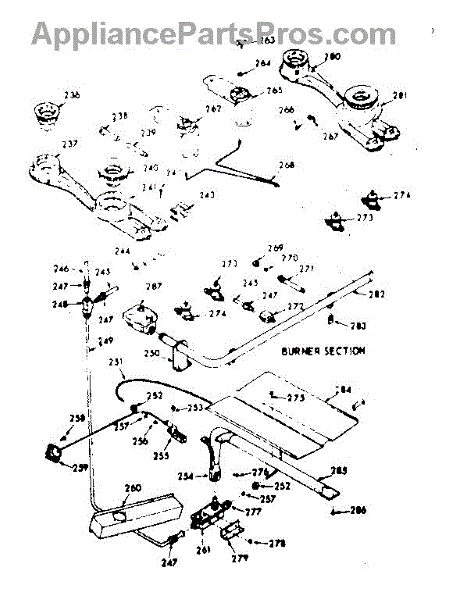 Parts for Kenmore 103.7827321 (1037827321, 103 7827321): Burner Section Parts