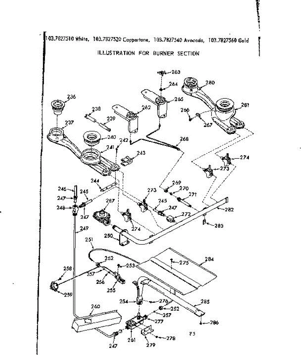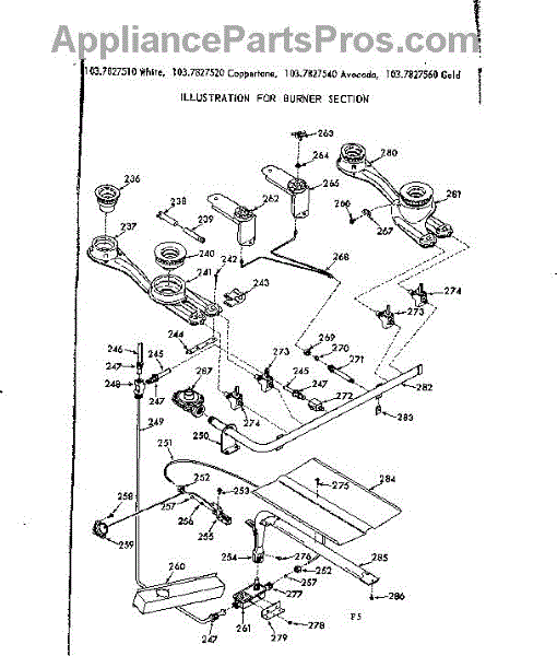 Parts for Kenmore 103.7827520 (1037827520, 103 7827520): Burner Section Parts