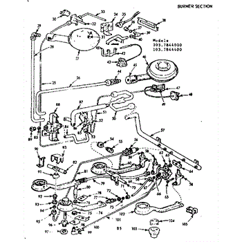 Parts for Kenmore 103.7844000 (1037844000, 103 7844000): Burner Section Parts