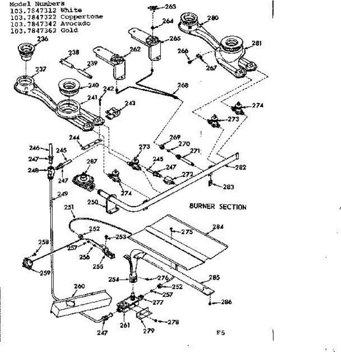 Parts for Kenmore 103.7847322 (1037847322, 103 7847322): Burner Section Parts