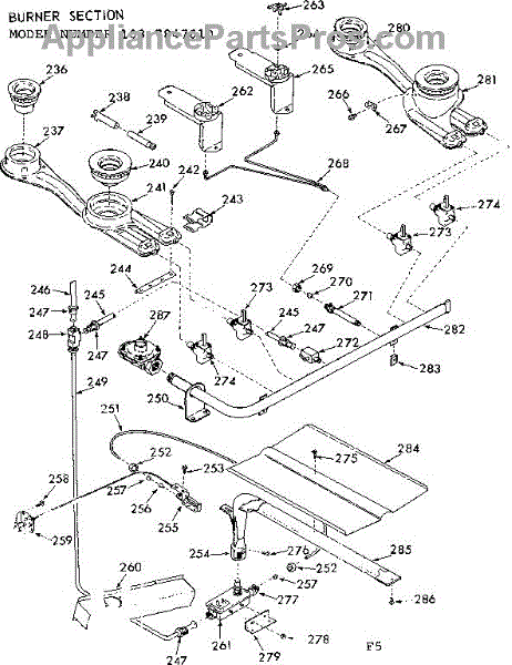 Parts for Kenmore 103.7847660 (1037847660, 103 7847660): Burner Section Parts