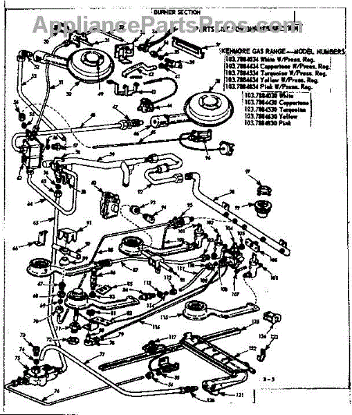 Parts for Kenmore 103.7884034 (1037884034, 103 7884034): Burner Section Parts