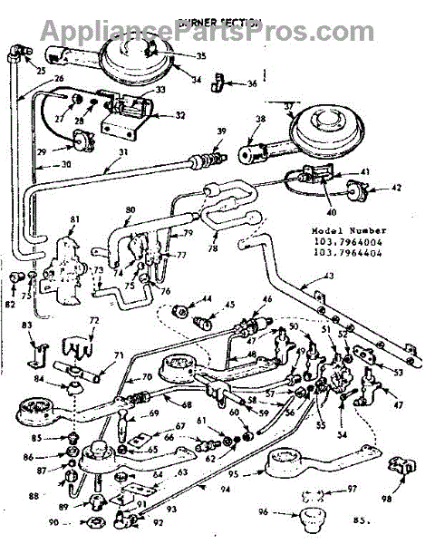 Parts for Kenmore 103.7964404 (1037964404, 103 7964404): Burner Section Parts