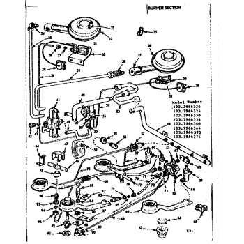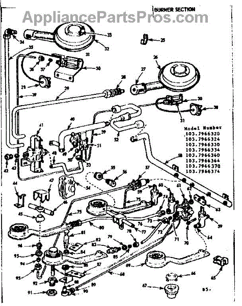 Parts for Kenmore 103.7966370 (1037966370, 103 7966370): Burner Section Parts