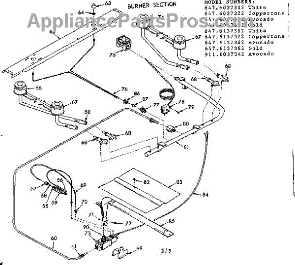 Parts for Kenmore 911.6037342 (9116037342, 911 6037342): Burner Section Parts