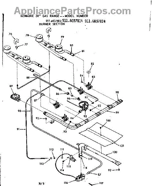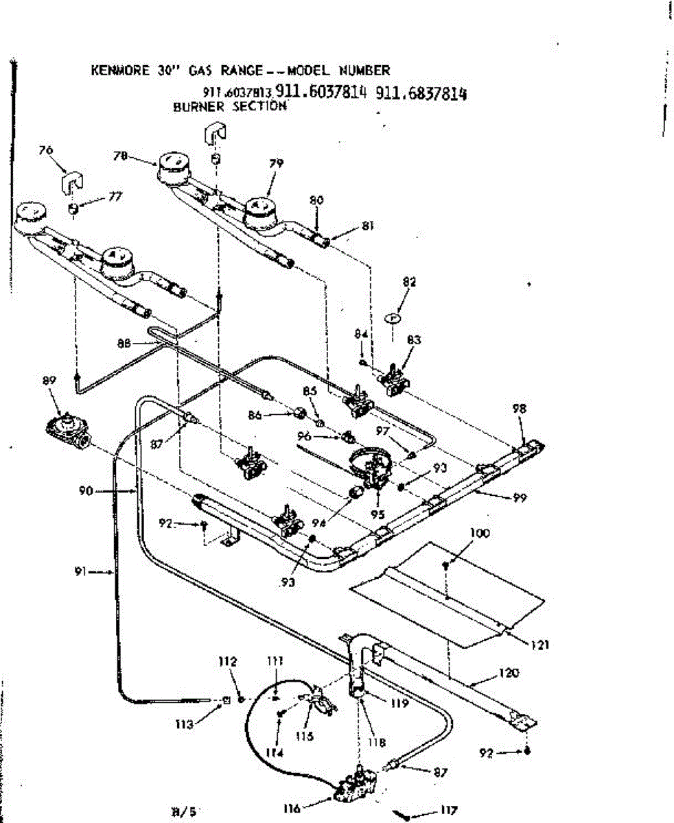 Parts for Kenmore 911.6037814 (9116037814, 911 6037814): Burner Section Parts