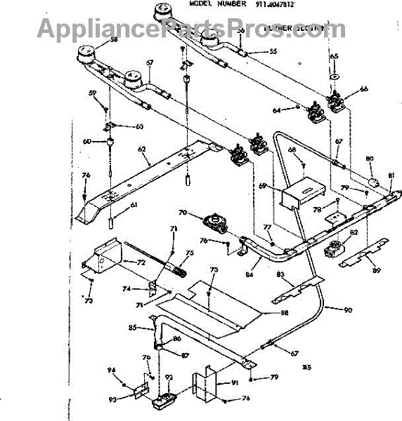 Parts for Kenmore 911.6047812 (9116047812, 911 6047812): Burner Section Parts