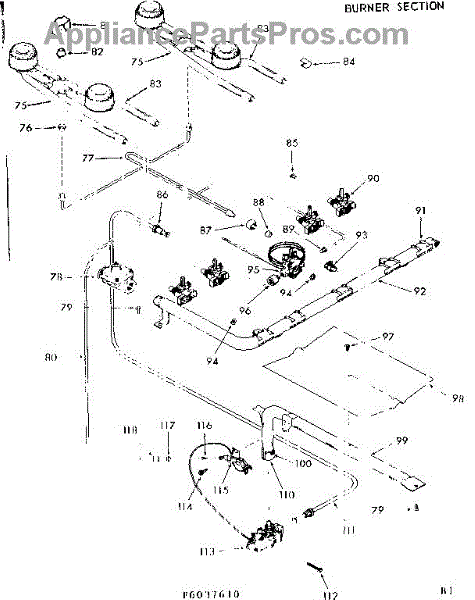 Parts for Kenmore 911.6057640 (9116057640, 911 6057640): Burner Section Parts