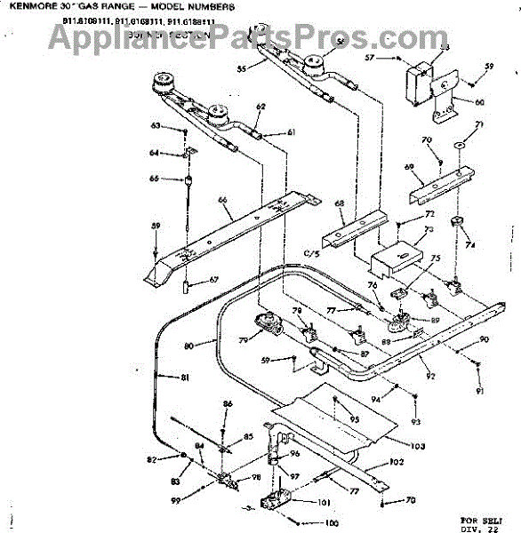 Parts for Kenmore 911.6108111 (9116108111, 911 6108111): Burner Section Parts