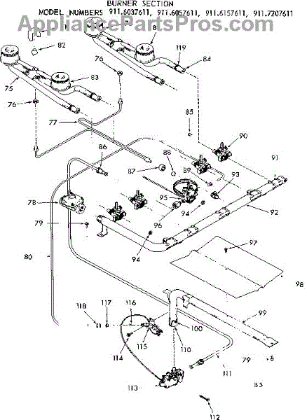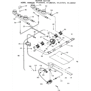 Parts for Kenmore 911.6157611 (9116157611, 911 6157611): Burner Section Parts