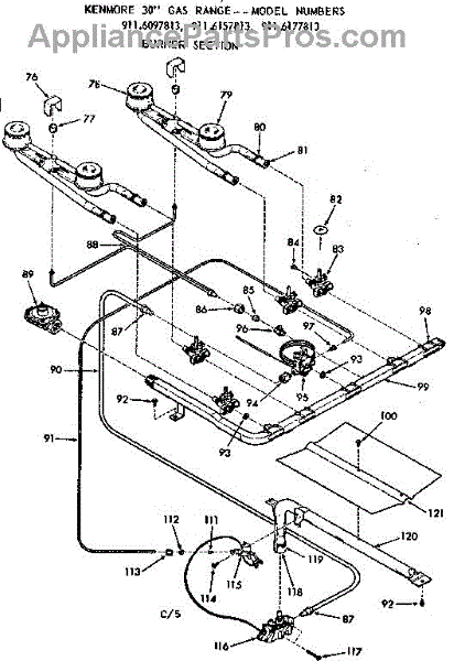 Parts for Kenmore 911.6157813 (9116157813, 911 6157813): Burner Section Parts