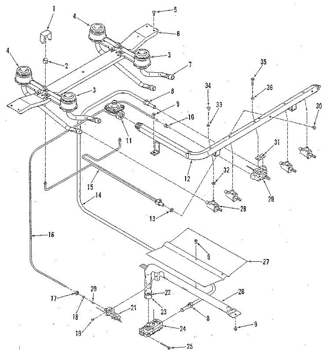Inverted tubing nut secures gas line connections on ranges and ovens. Replace if stripped, corroded, or missing to ensure proper tubing fitment.