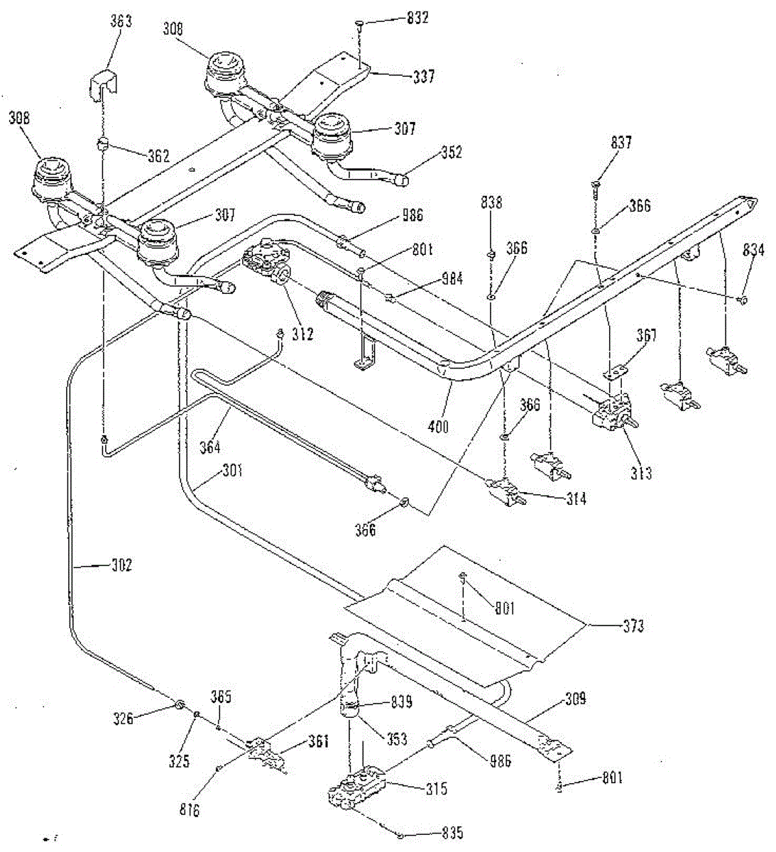 Air shutter for cooktop burners. Adjusts air-to-gas mixture for proper flame combustion. Replace if cracked, broken, or missing to restore burner performance.