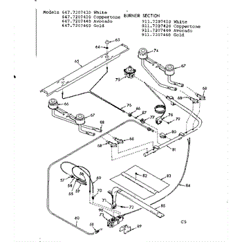 Parts for Kenmore 911.7207420 (9117207420, 911 7207420): Burner Section Parts