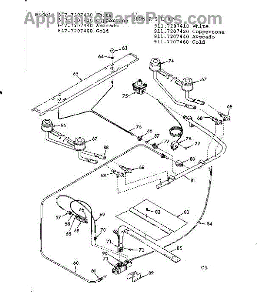 Parts for Kenmore 911.7207440 (9117207440, 911 7207440): Burner Section Parts