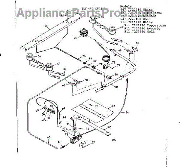 Parts for Kenmore 911.7227410 (9117227410, 911 7227410): Burner Section Parts