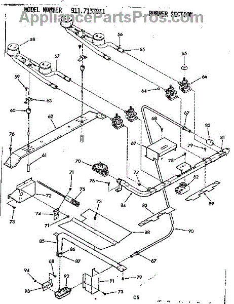 Parts for Kenmore 911.7237911 (9117237911, 911 7237911): Burner Section Parts
