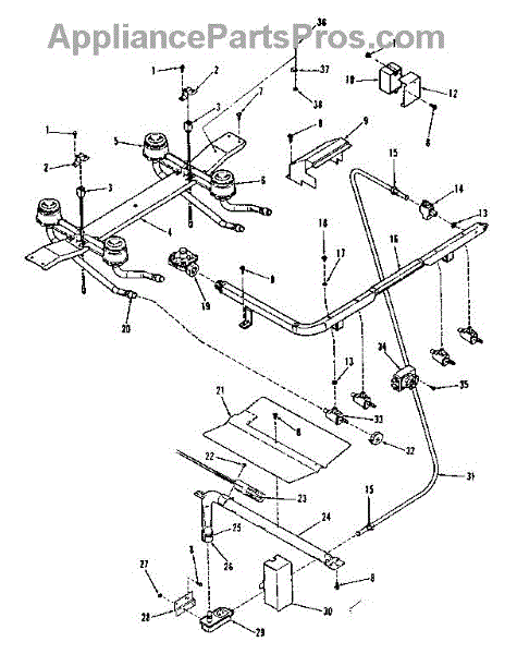 Parts for Kenmore 911.7238710 (9117238710, 911 7238710): Burner Section Parts
