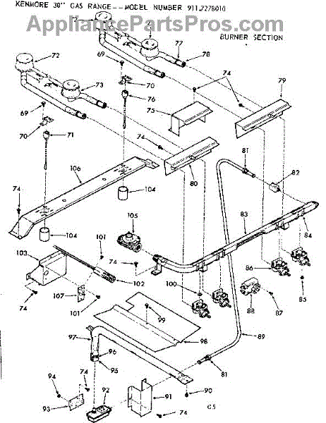 Parts for Kenmore 911.7278010 (9117278010, 911 7278010): Burner Section Parts