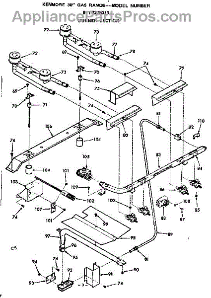 Parts for Kenmore 911.7278013 (9117278013, 911 7278013): Burner Section Parts