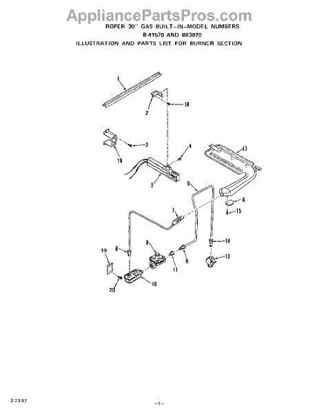 Parts for Roper B4157X0: 02 - Burner Section Parts